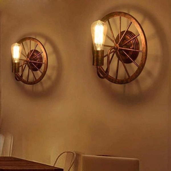ADVANTAGES: The design of the oversized spoke wheel reproduces the classic medieval look that appeals to everyone. A matte iron cage that is durable and protects the bulb while providing a better lighting experience
